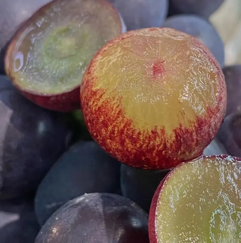 Kyoho grapes are a type of grape with a long history, cultivated in Japan in 1937 and introduced to China in 1959. Kyoho grapes are considered the “king of popularity” in the grape world. They have large, round, and plump berries with a purplish-black skin encasing tender, juicy flesh and exuding a rich fruity aroma. Kyoho grapes have a soft, sweet texture and a subtle strawberry fragrance; this unique flavor makes them a top choice for many when buying grapes.With a rich flavor, soluble solids content of 17-19%, edible portion of 75%, vitamin C content of 4 mg/100g, and total acid content ≤0.5g/100ml, this product with excellent quality.